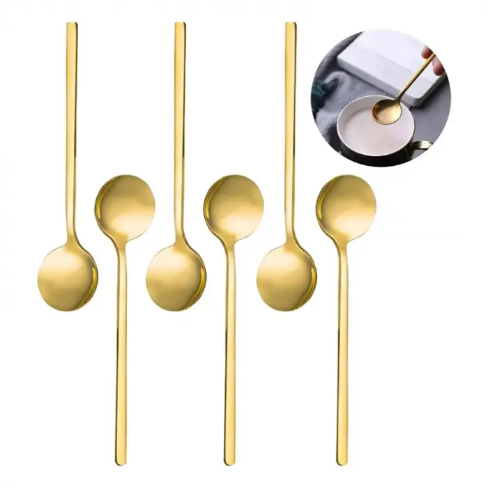 Este set de 6 cucharitas de mango largo es perfecto para café, té o postres, combinando diseño delicado y funcionalidad en un formato compacto y refinado.